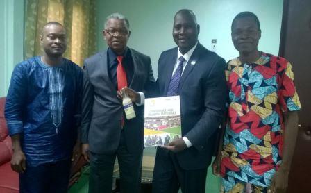 26 July 2016. Cotonou. Mr Patrice SEWADE, Coordinator of SOJAGNON -NGO; Mr Gbèlidji VODOUHE and Mr Martin AGBOTON respectively program officer and Research Assistant at SOJAGNON-NGO were received in audience by Dr. Delphin KOUDANDE, Minister of Agriculture, Animal husbandry and Fishery assisted by Mr Mignannou FANDY. . During the audience ProSAM project funded by FARA through PAEPARD project sponsored by the EC and the ProSeSS project funded by the NWO/Arf of the Kingdom of the Netherlands; and the agribusiness project under AAIN were presented.